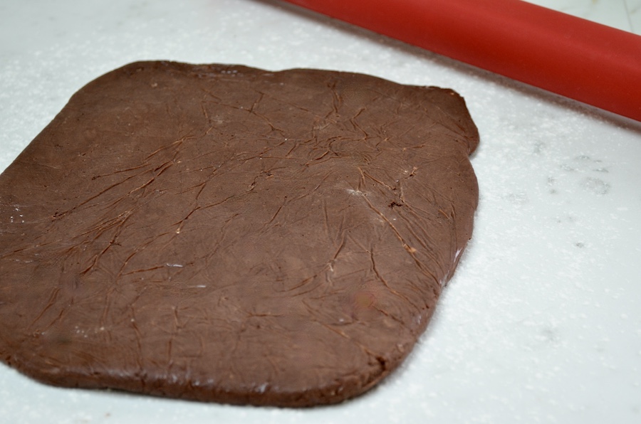 Den Mürbeteig zubereiten: Mehl, Kakao und Puderzucker sieben und mit Salz in eine Schüssel geben und gut vermengen. Die kalte in kleine Stücke geschnittene Butter hinzu fügen und alles mit den Fingerspitzen verkneten, bis die Mischung sandig aussieht. Dann das Eiweiss hinzu geben und den Teig schnell von Hand kneten, bis er glatt und homogen ist. Teig flach drücken, in Frischhaltefolie wickeln und mind. 3h im Kühlschrank ruhen lassen, am besten bereitet man den Teig schon am Vortag zu.