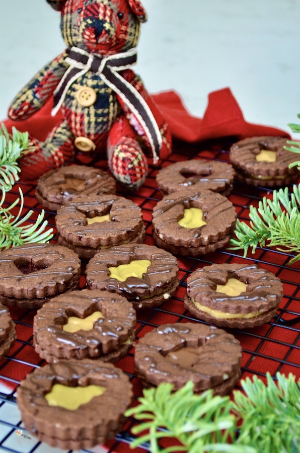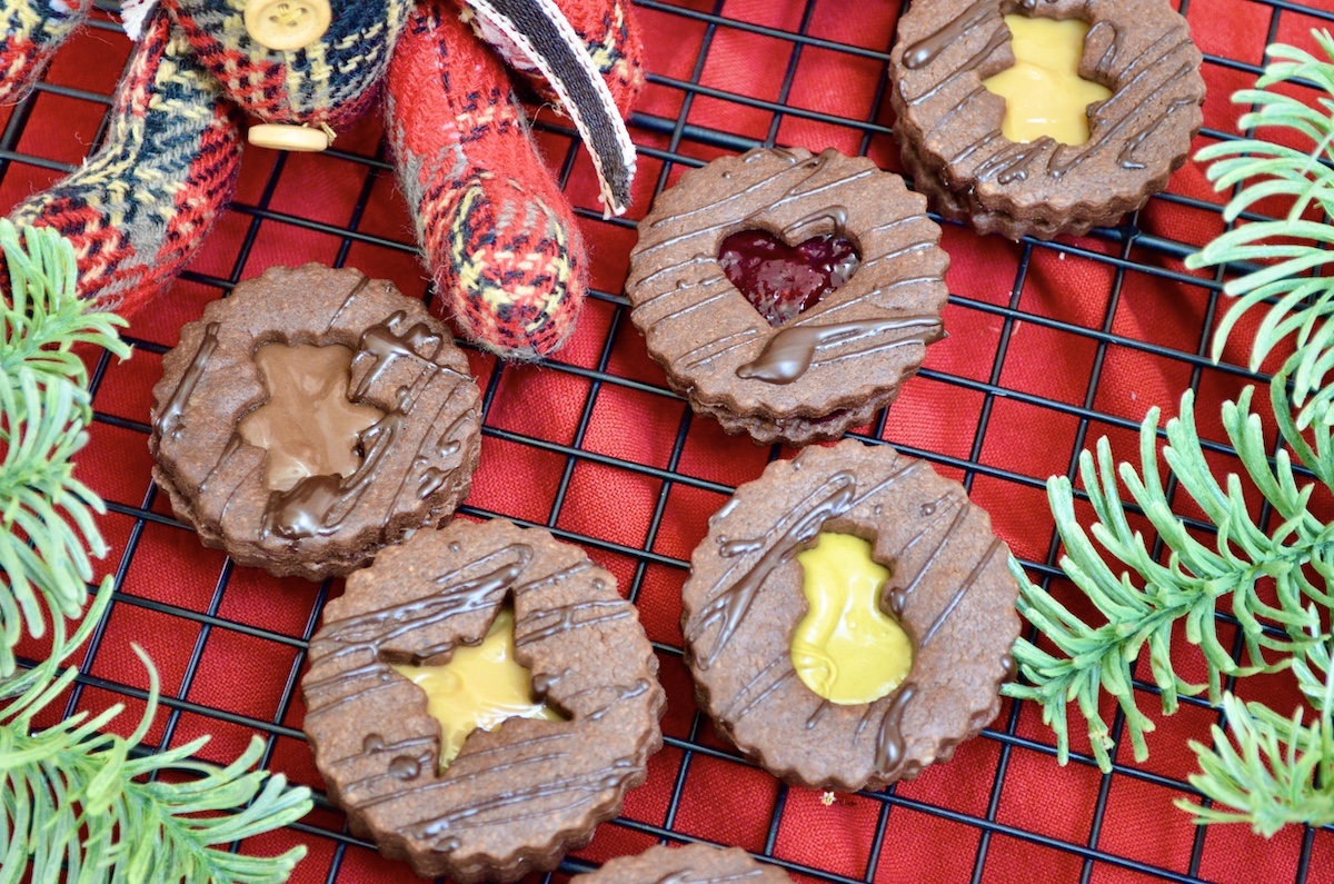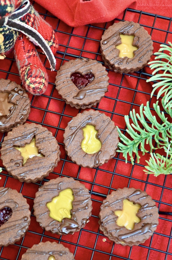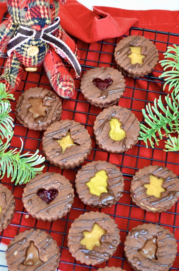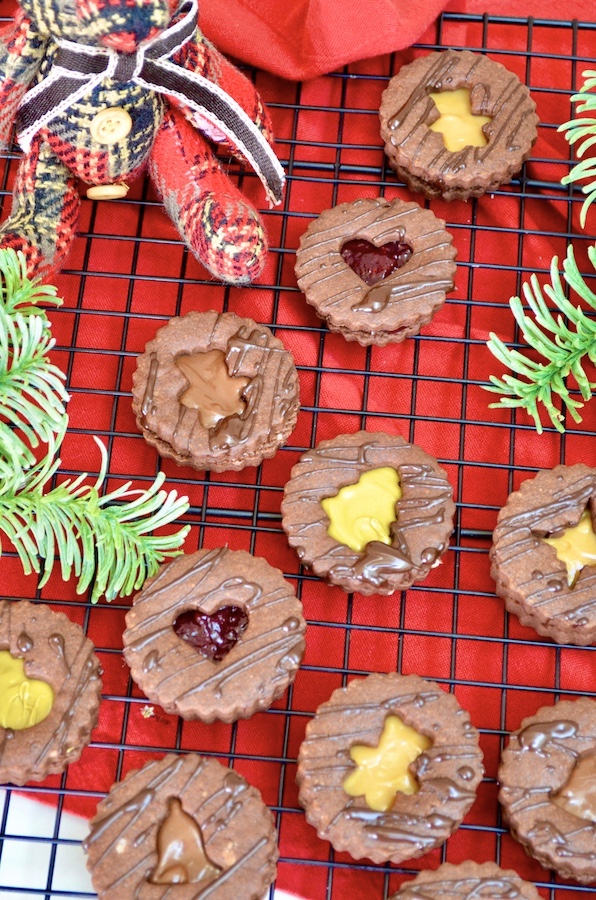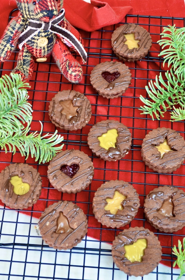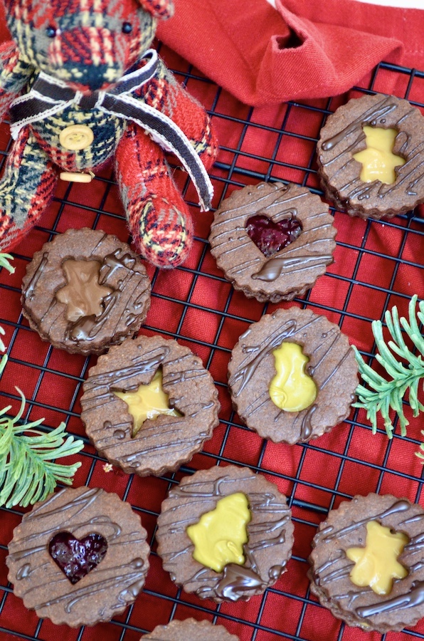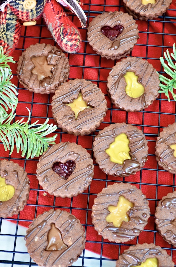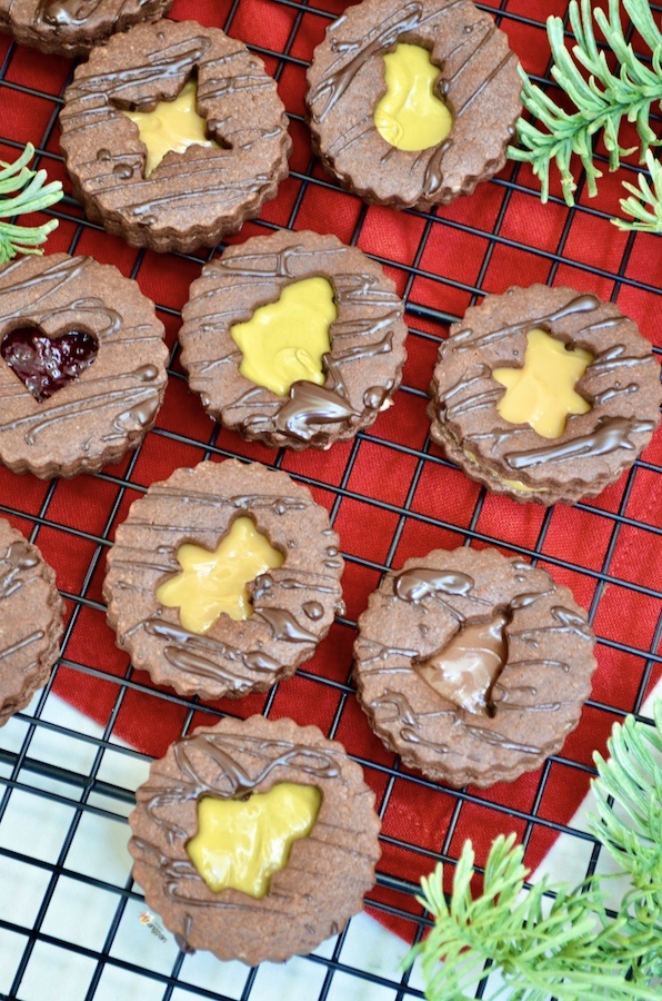 Schokoladen-Spitzbuben die schokoladige Variante der besten Weihnachtsplätzchen der Welt. Das Rezept bleibt unverändert, ich habe lediglich einen Teil des Mehls durch Kakao ersetzt. Für die Füllung empfehle ich Haselnussaufstrich (auch den hellen ohne Kakao), Pistaziencrème oder Dulce de Leche. Wer es etwas ausgefallener mag, kann natürlich auch seine Lieblingskonfitüre oder Orangenmarmelade verwenden. Man kann die Plätzchen sogar einfach mit geschmolzener Schokolade füllen, so erhält man den ultimativen Schokoladengenuss.