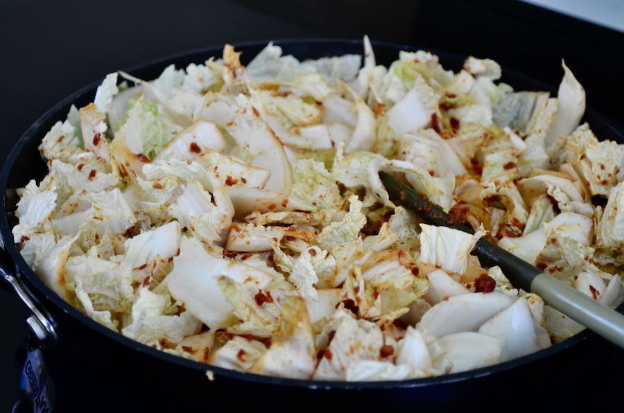 Mescolate bene e fate cuocere il cavolo cinese a temperatura media mescolando di tanto in tanto, alla fine dovrà essere cotto ma ancora croccante. Se c'è bisogno aggiungete ancora acqua, ma fate in modo che a fine cottura non ci sia più acqua in padella. Se c'è bisogno aggiustate di sale e togliete lo spicchio d'aglio se lo avete lasciato intero. Questo Cavolo Cinese Speziato è ottimo ancora bello caldo, ma anche freddo non ci scherza.