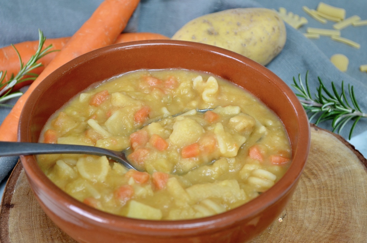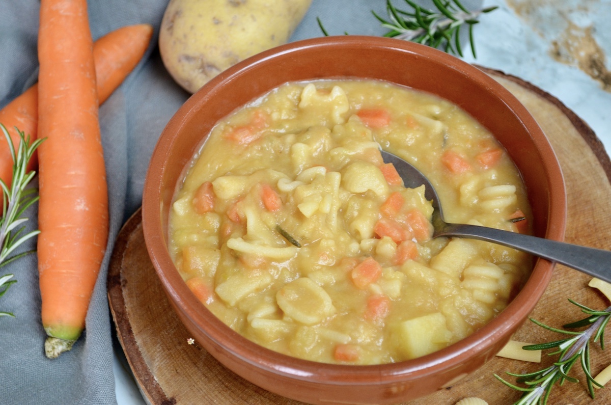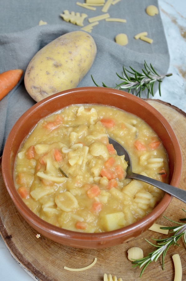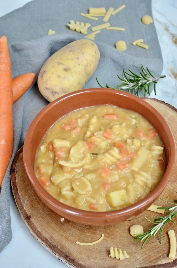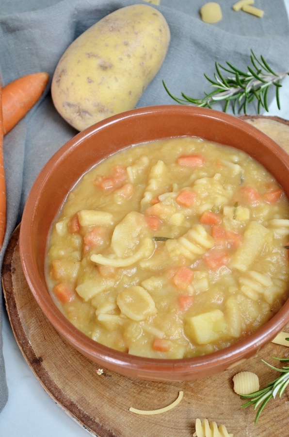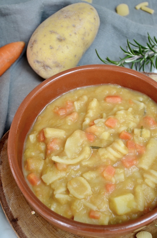 Pasta e Patate un piatto di pasta cremosissimo e confortevole, il comfort food per eccellenza oserei quasi dire! Una ricetta fatta con ingredienti da dispensa: patate, carote, cipolle, sedano, concentrato di pomodoro, pasta e per non sprecare niente, anche la scorza del parmigiano. In inverno preparo molto spesso questo piatto, soprattutto durante le giornate gelide o quando siamo stati fuori tutto il giorno e sentiamo il freddo nelle ossa. Vi assicuro che questo piatto di pasta caccerà fuori tutto il freddo!